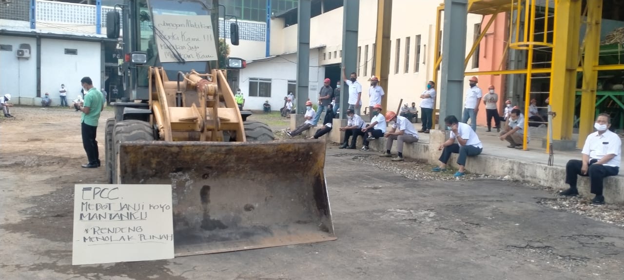 KUDUS-Atusan karyawan Pabrik Gula Rendeng Kudus (PG), nganakake demonstrasi dina Rebo (23/6) wingi esuk. Tumindak kasebut minangka panjaluk supaya manajemen enggal ngrampungake proyek revitalisasi Rendeng PG sing saiki ditindakake PT Wika Barata.