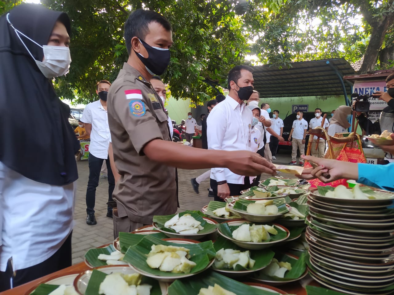 “Setiap hari Jum’at, usai senam pagi, kami memborong dagagangan pedagang yang ada di sekitar kantor secara bergantian,”kata Djati Solechah. Jum’at 06/08/2021.